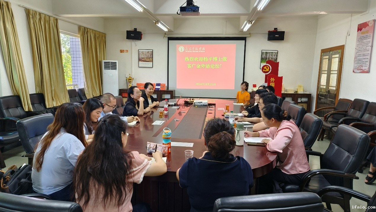 10月21日上午,《中国翻译》杂志主编、中国翻译研究院副院长杨平博士莅临我院,在外文学院的会议室2417与学院领导及部分教师进行了主题为“漫谈研究论文选题及其它”的精彩座谈。