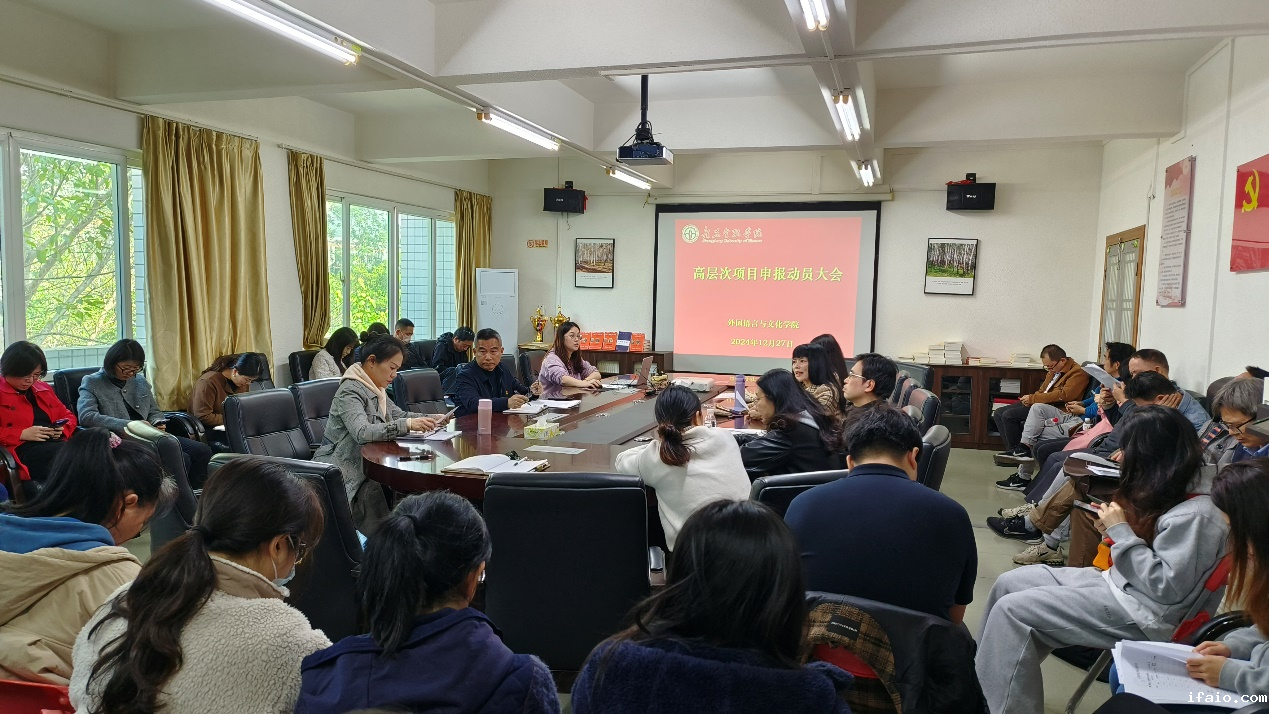 为落实12月19日2025年度国家级项目申报动员会易行健副校长讲话精神及学校科研处的工作要求,12月27日,外文学院召开高层次项目申报工作动员大会,旨在进一步激发全院教师的科研热情,推动高层次项目的申报工作。涂兵兰院长作动员讲话,全院教职员工参加了此次会议。