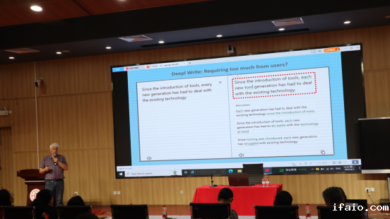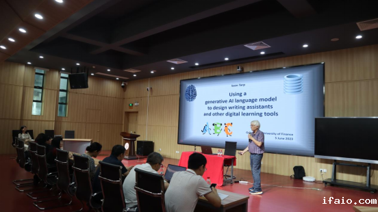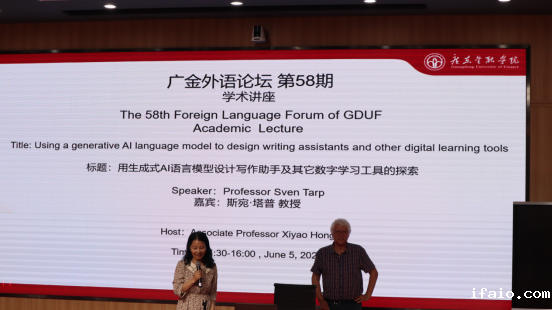 2023年6月5日下午,新利luck全站登录于北教103教室举办了第58期广金外语论坛。此次论坛邀请了国际著名词典学专家丹麦奥胡斯(University of Aarhus)大学的词典学中心主任Sven Tarp(斯宛·塔普)教授,为外文学院的师生带来一场题为“用生成式AI语言模型设计写作助手及其他数字学习工具的探索”的学术讲座。外文学院副院长洪溪珧副教授主持了此次论坛,学院领导和师生代表共同出席了本次讲座。