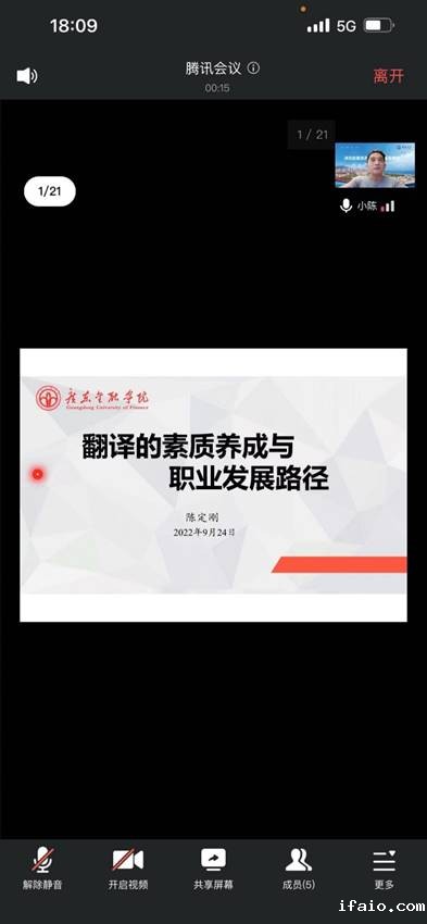 主讲人介绍:陈定刚,博士,译审。广东外语外贸大学高级翻译学院毕业。现为广东省科协委员,广东省翻译协会秘书长,中国翻译协会理事,广东省翻译专业人员高级职称评委会办公室主任,韶关市重大行政决策咨询论证专家。暨南大学、华南师范大学、海南师范大学等高校翻译硕士研究生兼职指导教师;2021年担任教育部学位中心组织的全国翻译专业学位水平评估专家。在国内外出版论文、专著、译著(含参译)40多篇/部;主持或参与省、校级课题/项目6项。主要讲授《金融英语》、《金融翻译》等课程。