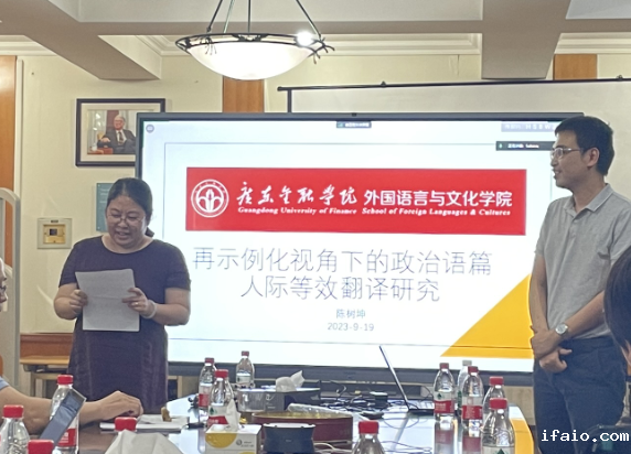2023年9月19日下午,“韩礼德文献中心学术沙龙”第四期在外国语学院韩礼德文献中心(外国语学院222室)成功举办。我院翻译系陈树坤博士应邀作客沙龙主讲,讲座主题为“再示例化视角下的政治语篇人际等效翻译研究”。中山大学王勇教授、常晨光教授,华南农业大学杨曙教授,澳门大学王博助理教授,香港理工大学马园艺博士以及多位中山大学、广东外语外贸大学在读博士生参加了此次沙龙。沙龙由中山大学功能语言学研究所主办,中山大学陈静副教授主持。