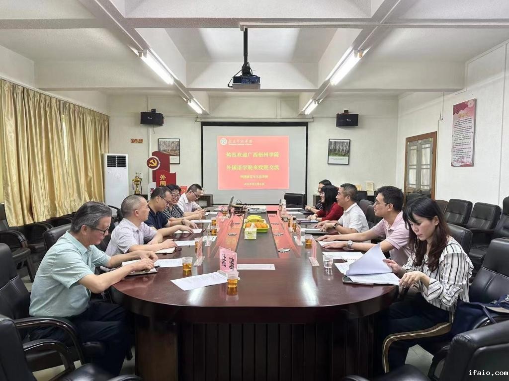 2024年5月6日,广西梧州学院外国语学院院长宋银秋教授与朱宇乾书记一行5人莅临18luck官方,就两院在教学、科研、人才培养等方面的合作与交流进行了深入的探讨。