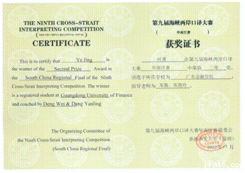 新利luck全站登录19级学生叶菁(191598115)于2022年10月23日代表18luck官网参加了线上进行的第九届“海峡两岸口译大赛”华南区赛。本次区赛选手来自广东、福建、海南、广西四个省份,参赛16所高校中包括华南理工大学、华南师范大学、暨南大学、广东外语外贸大学、深圳大学、海南大学、广西大学、福建师范大学等省内外著名高校。我校选手在第一轮淘汰赛中以出色表现晋级决赛,并最终取得二等奖的好成绩。