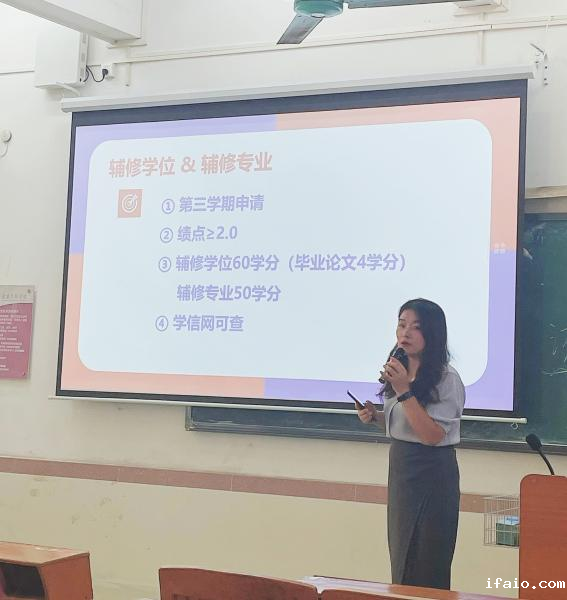 邓薇主任向翻译专业新生讲课,她通过“无翻译、不世界”的口号,突出了翻译在全球化中的关键作用。邓老师还详细介绍了翻译专业的培养目标、要求以及课程设置,包括核心课程、专业选修课程和跨学科课程,强调翻译专业在金融特色翻译MTI方向的优势,以及专职教师团队的强大师资力量。她提到,翻译专业的学生将有机会参与多种专业考试和比赛,如语音语调大赛、笔译大赛和口译大赛等,这些活动将有助于提升学生的实践能力和专业技能。在AI时代背景下,邓老师还谈到了辅修学位和辅修专业的重要性,并分享了自己对于翻译专业的一些感悟。她建议新生们每天阅读中英文材料,查询英文词典,结合个人兴趣发展特长,并积极拥抱新时代的挑战。会议最后,邓老师以“心中有火,眼里有光”的寄语,鼓励新生们要主动学习,勇敢追求自己的梦想。