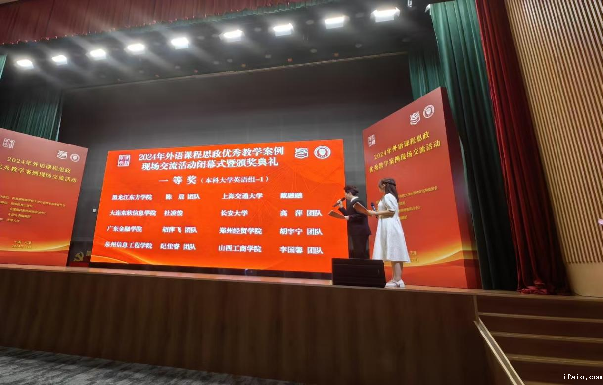 2024年11月16日,外文学院大学英语教学部的胡萍飞、温荣芬、甘容辉、曲敏和翁佳炀五位教师组成的参赛团队,凭借其卓越的教学风采和深厚的理论功底,在众多参赛团队中脱颖而出,荣获本科大学英语组全国一等奖的好成绩。比赛现场随机抽取教学素材,通过说课阐述和问答两个环节进行教学展示,深入挖掘教学素材中的思政教育精髓,实现外语教学与思政教育多角度、深层次的创新融合,彰显了教学风采。