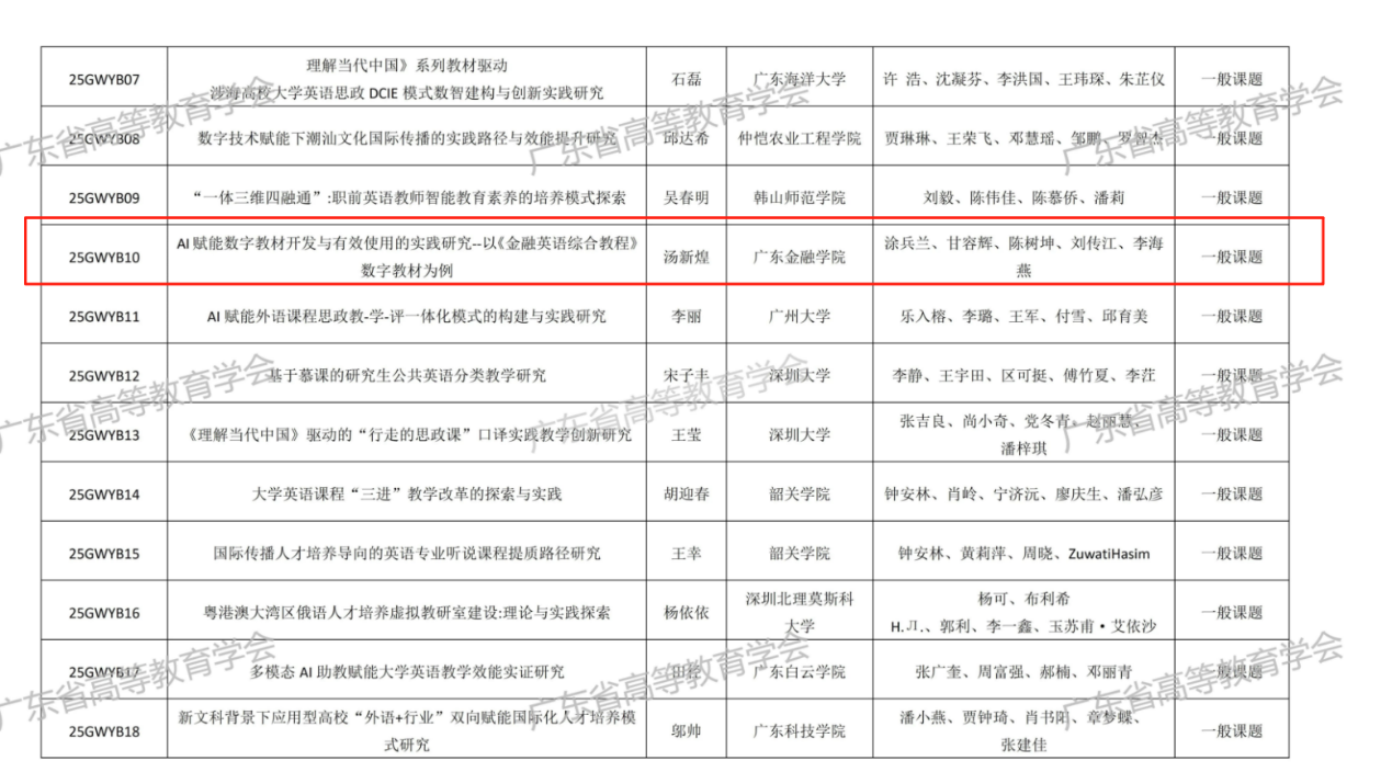 近日,广东省高教学会公布了2025年广东省本科高校“外语教学改革研究与实践”专项课题拟立项名单。我校新利luck全站登录大学英语部汤新煌主任的课题成功获批立项。